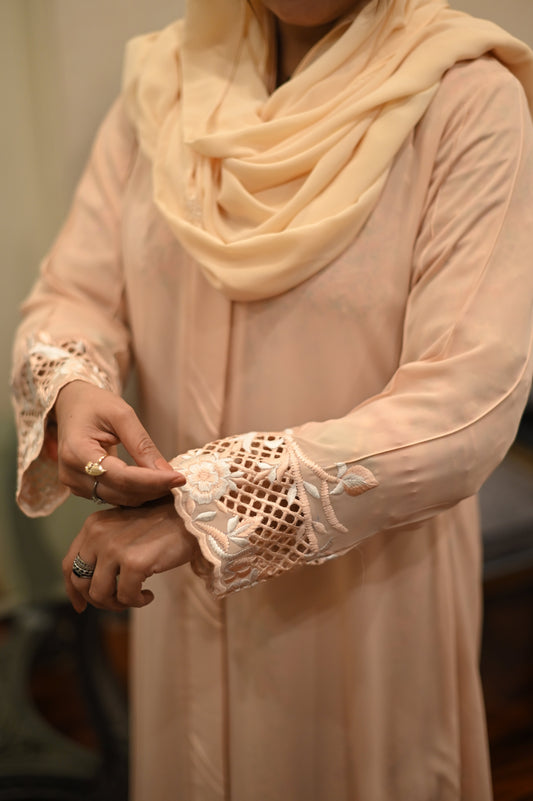 Peach embroidered and cutwork abaya