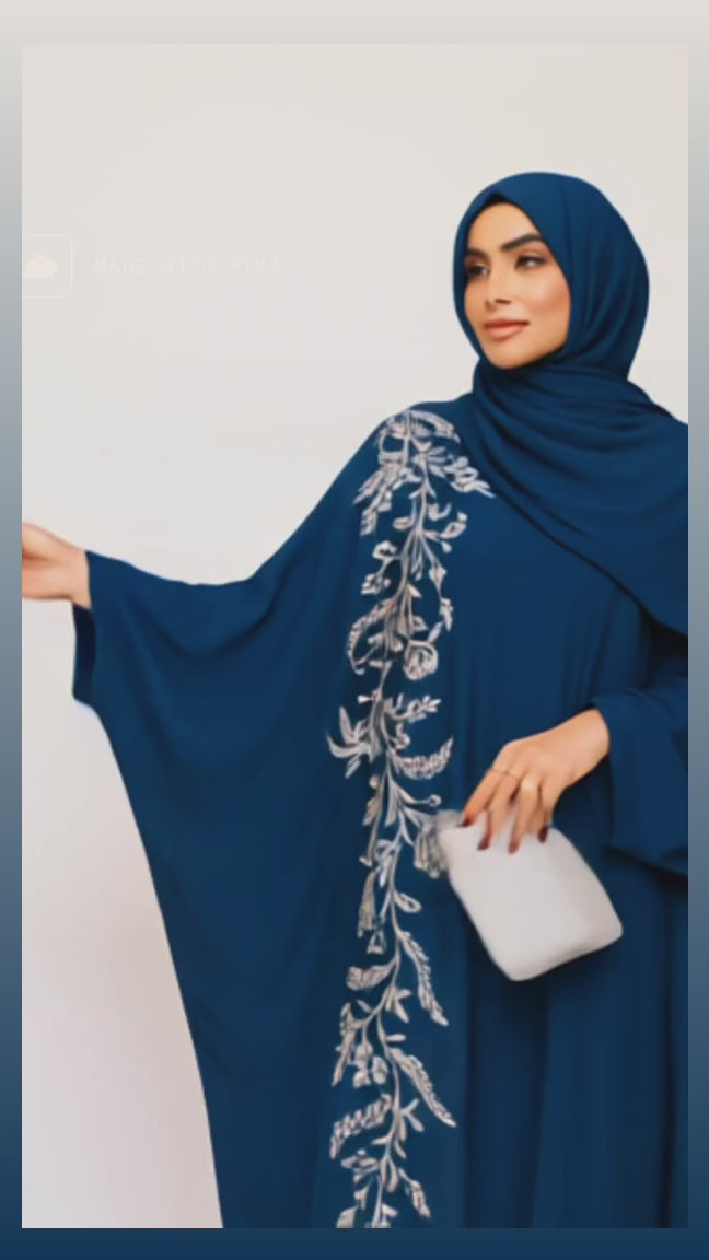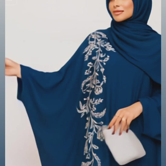 It’s a teal poncho with embroidery on front on nidah fabric.
